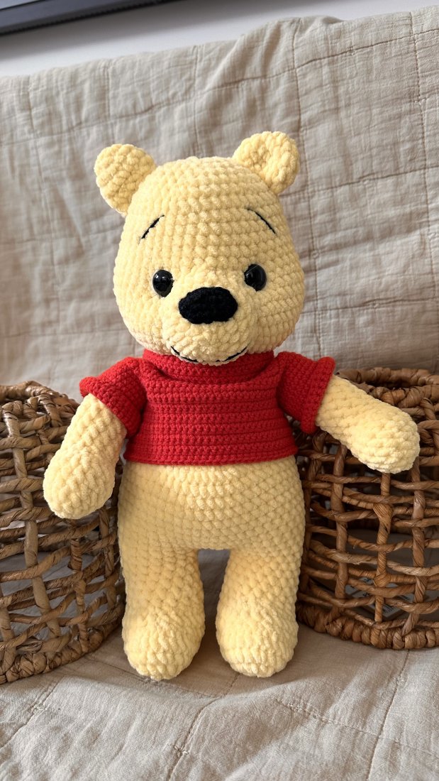 Ręcznie wykonany miś szydełkowy inspirowany Kubusiem Puchatkiem