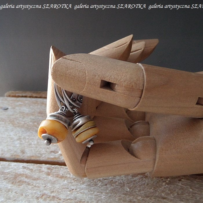 MIODOWE KOLCZYKI Z BURSZTYNU I SREBRA