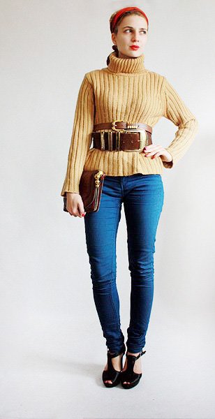 Ciepły golf w miodowym kolorze.