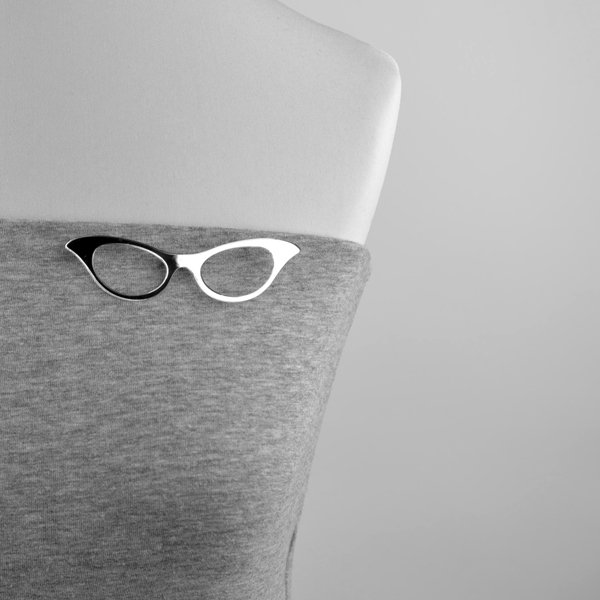broszka lustrzana w kształcie kształcie okularów