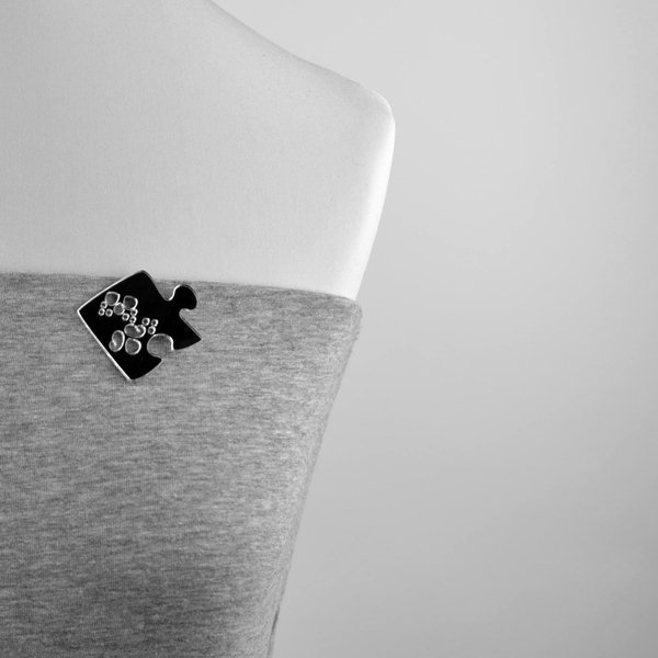 broszka lustrzana w kształcie puzzla z ażurowym wzorem