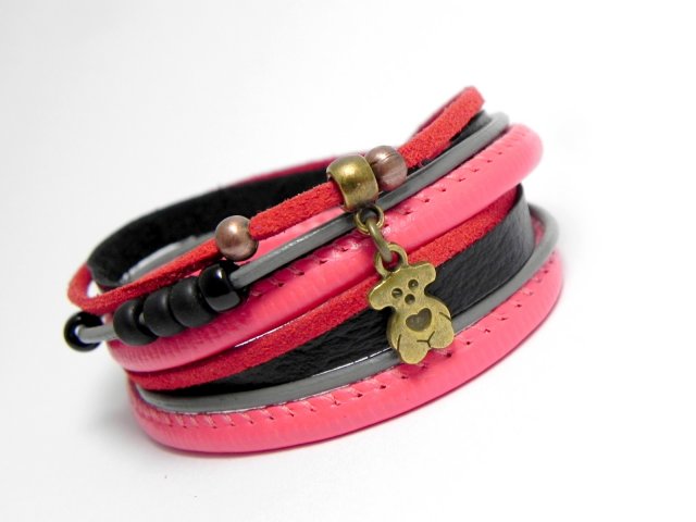 Bransoletka do dwukrotnego owinięcia, wykonana została z rzemieni ze skóry naturalnej i ekologicznej, koralików Toho oraz elementów w kolorze antycznym. Bransoletka będzie odpowiednia na nadgarstek 16 - 17 cm.