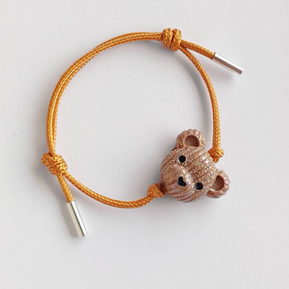 MIŚ bransoletka- uroczy design. Nietuzinkowy dodatek idealnie stanowi uzupełnienie swobodnych, casualowych stylizacji. Bransoletka wykonana są z :koralik akrylowy – miś – (23X 19 mm), ozdobny sznurek, srebro pr. 925. Ten niebanalny drobiazg na pewno wywoła uśmiech na Twojej twarzy.