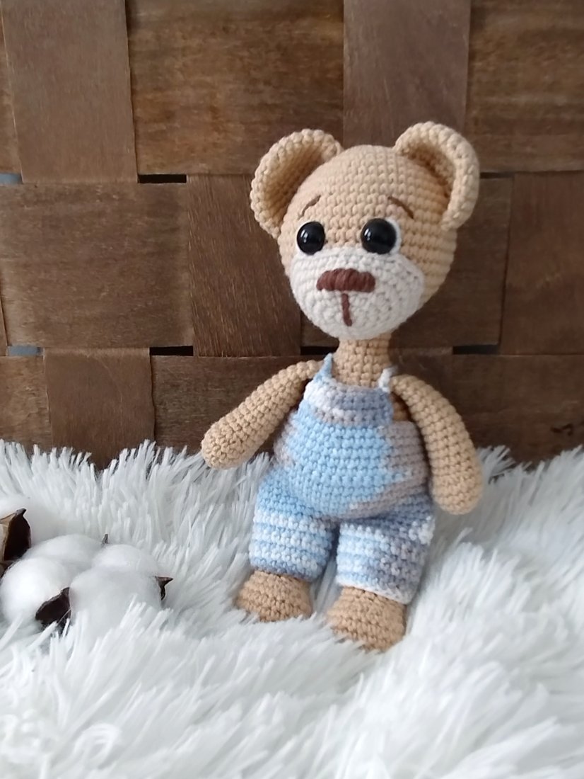 Szydełkowy miś w zdejmowanych spodniach to urocza zabawka dla każdego malucha.