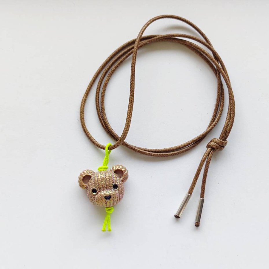 MIŚ wisiorek uroczy design. Nietuzinkowy dodatek idealnie stanowi uzupełnienie swobodnych, casualowych stylizacji. Wisiorek wykonany są z : koralik akrylowy – miś – (23X 19 mm), ozdobny sznurek, srebro pr. 925. Ten niebanalny drobiazg na pewno wywoła uśmiech na Twojej twarzy.