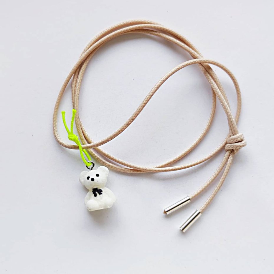 MIŚ wisiorek uroczy design. Nietuzinkowy dodatek idealnie stanowi uzupełnienie swobodnych, casualowych stylizacji. Wisiorek wykonany są z : akrylowa zawieszka- miś – (15 X 22 mm), ozdobny sznurek, srebro pr. 925. Ten niebanalny drobiazg na pewno wywoła uśmiech na Twojej twarzy.