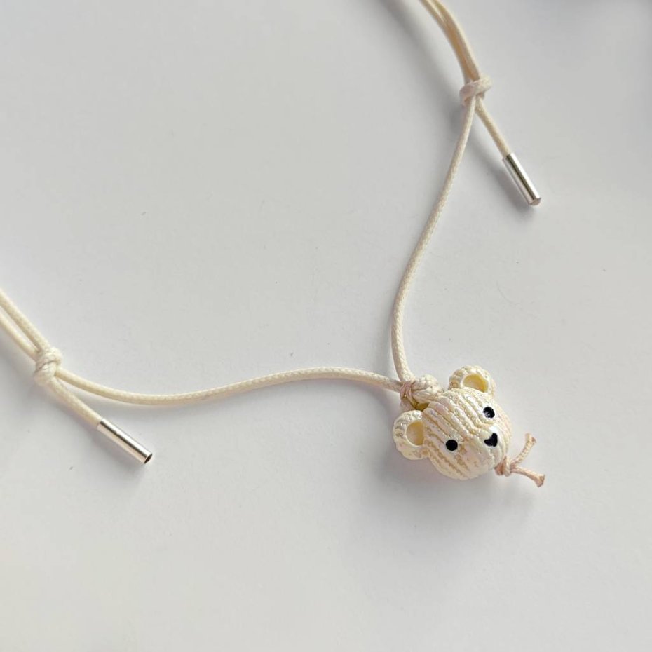 MIŚ wisiorek uroczy design. Nietuzinkowy dodatek idealnie stanowi uzupełnienie swobodnych, casualowych stylizacji. Wisiorek wykonany są z : koralik akrylowy – miś – (23X 19 mm), ozdobny sznurek, srebro pr. 925. Ten niebanalny drobiazg na pewno wywoła uśmiech na Twojej twarzy.