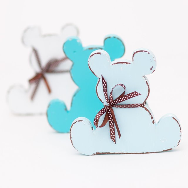 Drewniany miś z kokardą, ręcznie malowany- ciekawy dodatek do wystroju wnętrza dla dużych i małych.