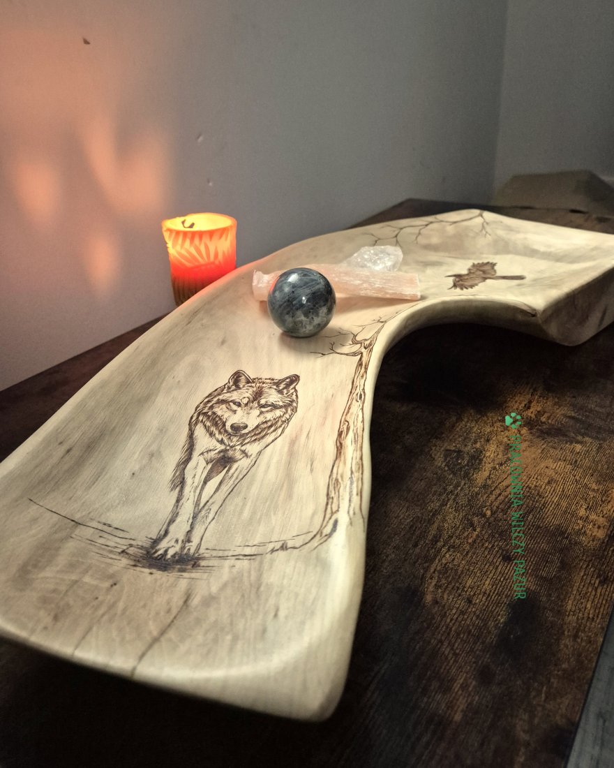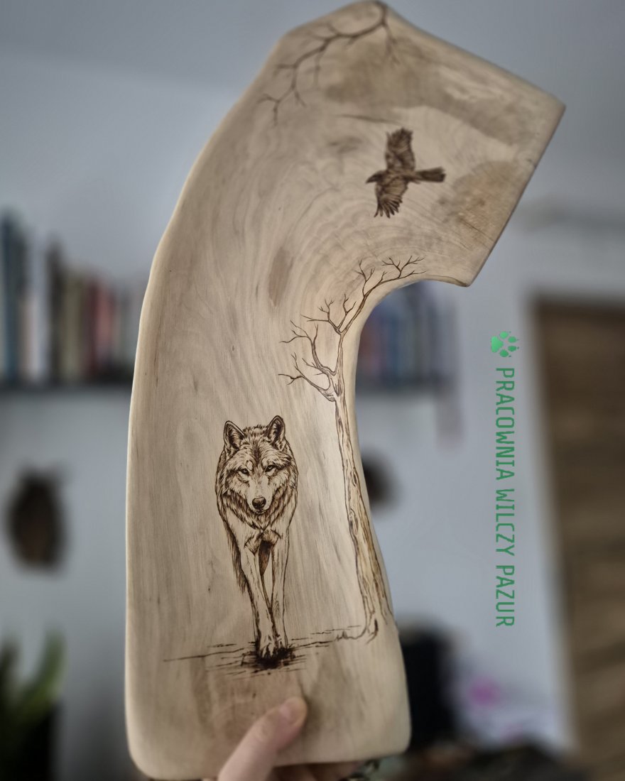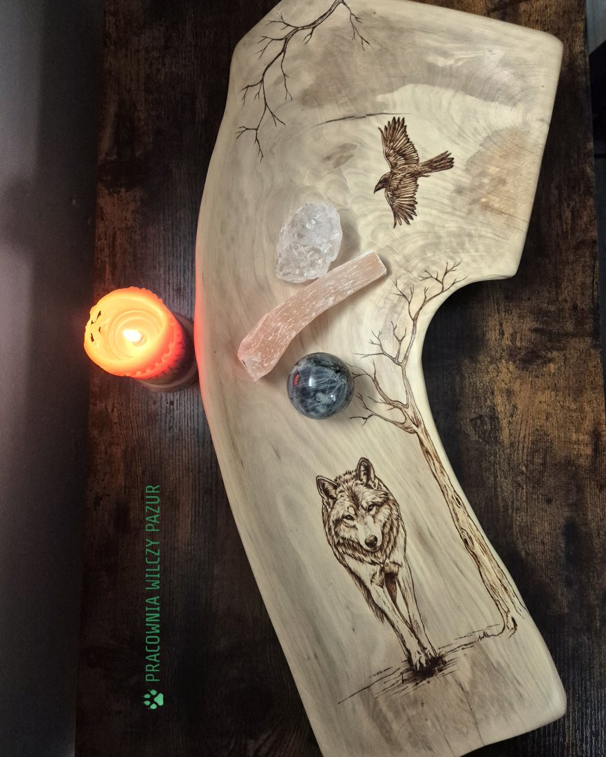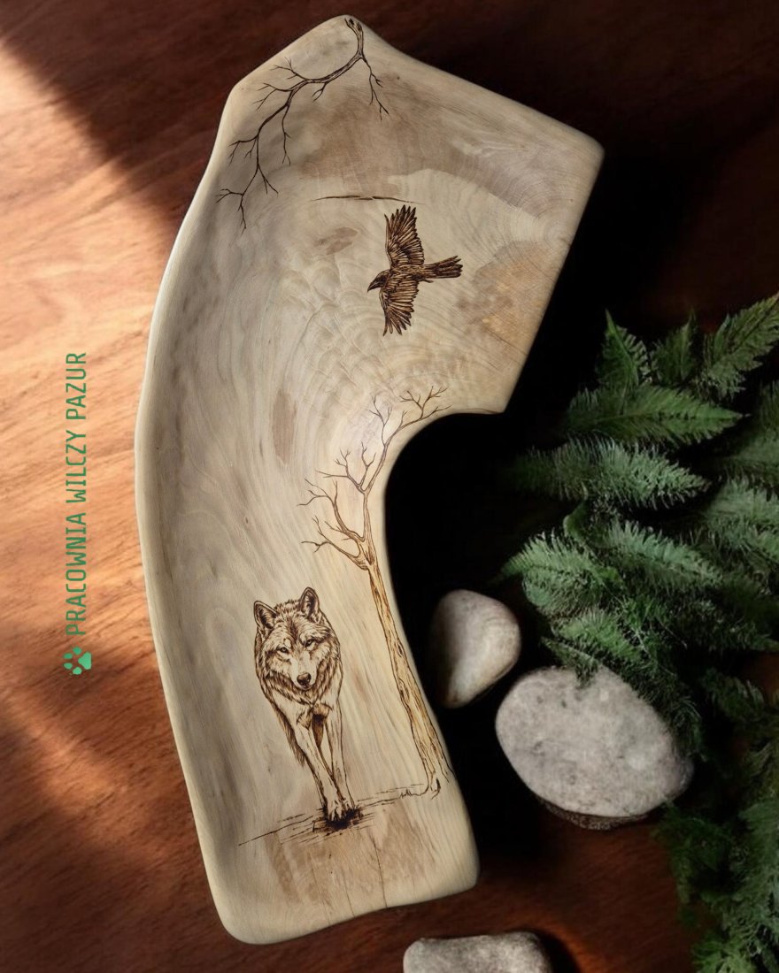 Tagi: #misa drewniana, #misa z litego drewna, #pirografia, #wilk i kruk