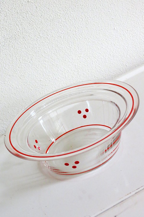 Mały, szklany wazonik vintage, malowany w biało-czerwone paski.