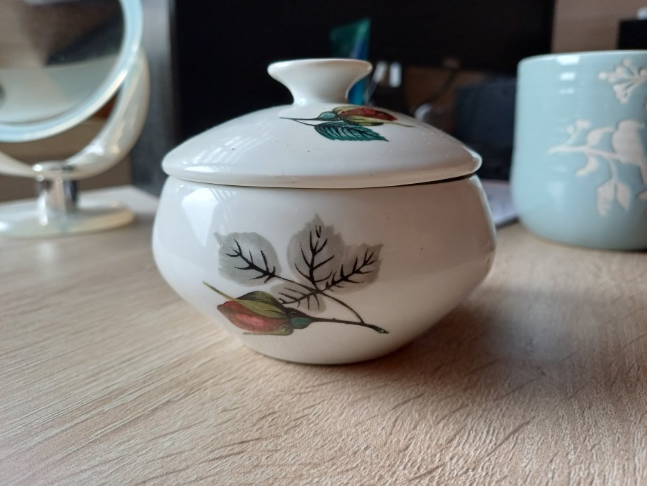 Miseczka z przykrywką polskiej firmy Karolinka z czasów PRL. Stan bardzo dobry. Dla miłośników takich drobiazgów.