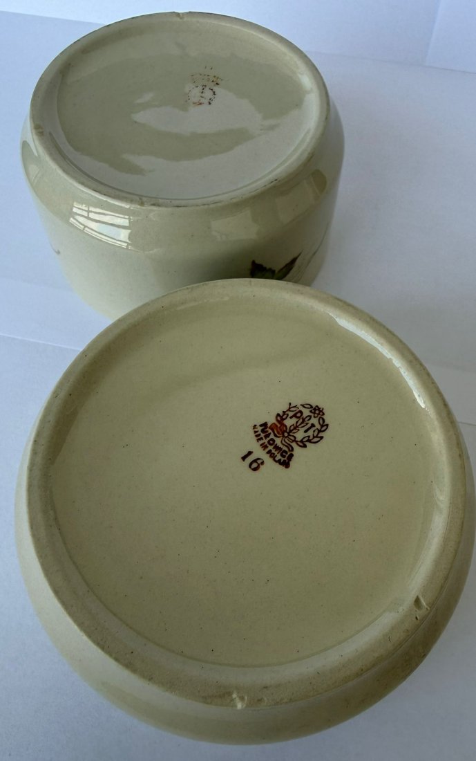 Stan zachowania bardzo dobry – bez pęknięć czy wyszczerbień, jedynie 2 miseczki od spodu mają malutkie nierówności - nieprzeszkadzające w użytkowaniu (ostatnie zdjęcie).