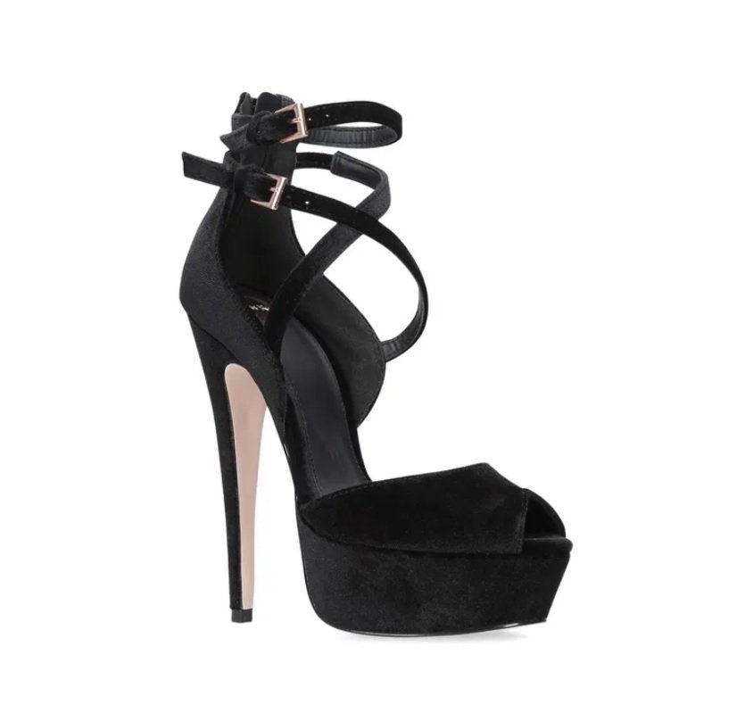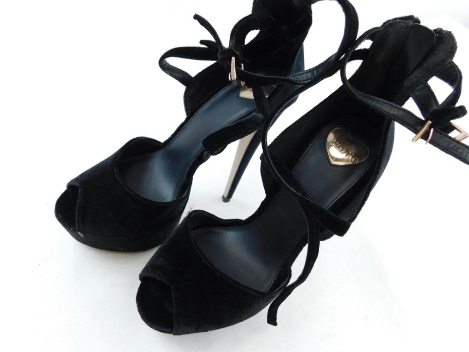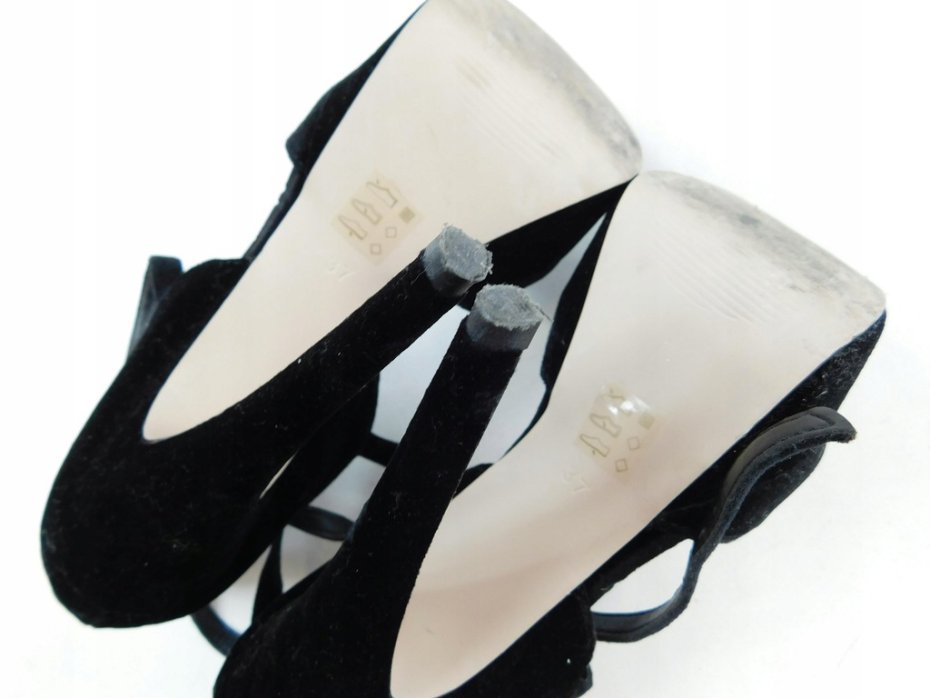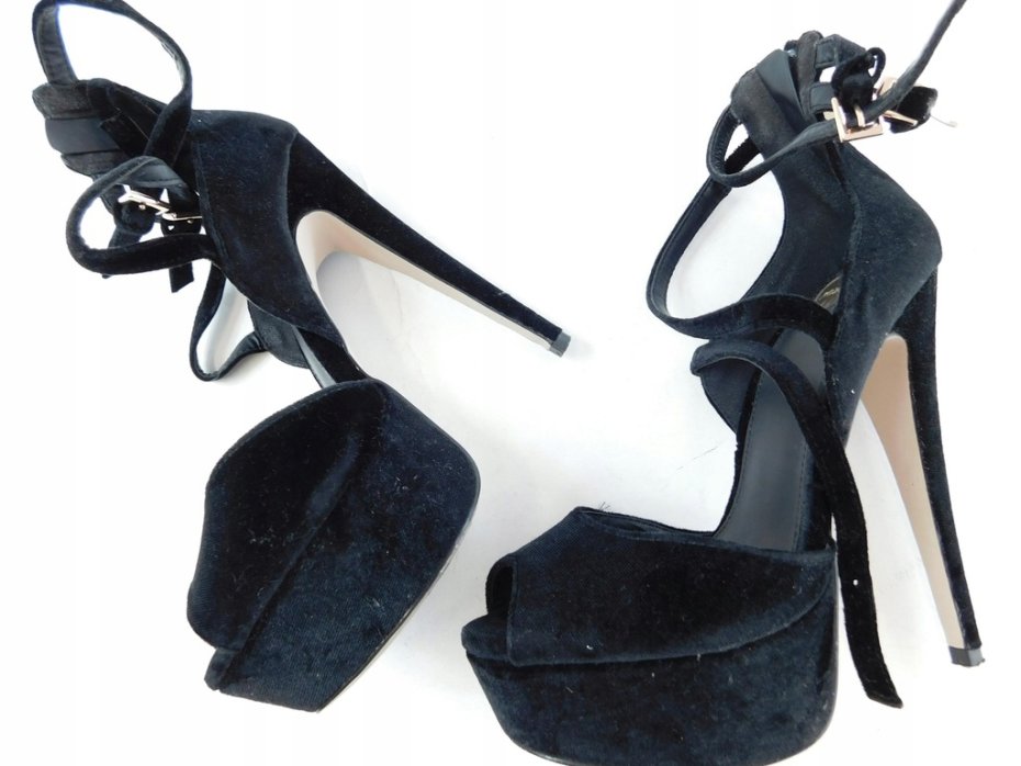 Czarne, welurowe sandały na wysokim obcasie, stan bdb.