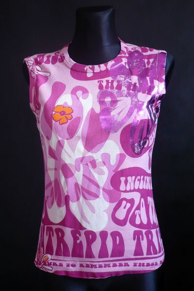Top firmy MISS SIXTY.Uszyty z bawełny w kolorowe nadruki [jeden odblaskowy] w stylu hippie.Z tyłu gładki.