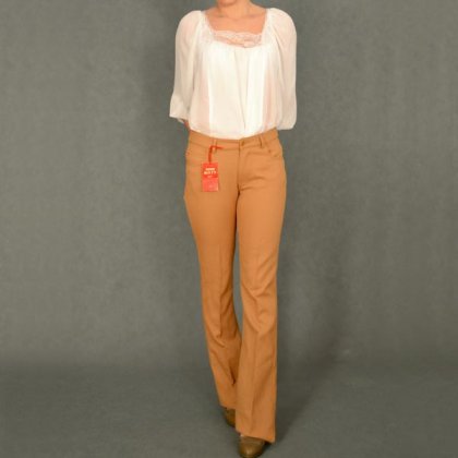 Czadowe spodnie od MISS SIXTY. Uda dopasowane, dół bardzo delikatnie rozszerzany. Całość utrzymana w wersji retro - retro kolor miodowy, retro materiał w retro jodełkę. Świetnie wyglądają z luźnymi koszulami wpuszczonymi do środka. Nieużywane, z metką. Spodnie są dość długie na modelkę - na zdjęciu są podwinięte - w razie zbyt długich można spokojnie je skrócić i nie stracą fasonu. Kolor może się delikatnie różnić.