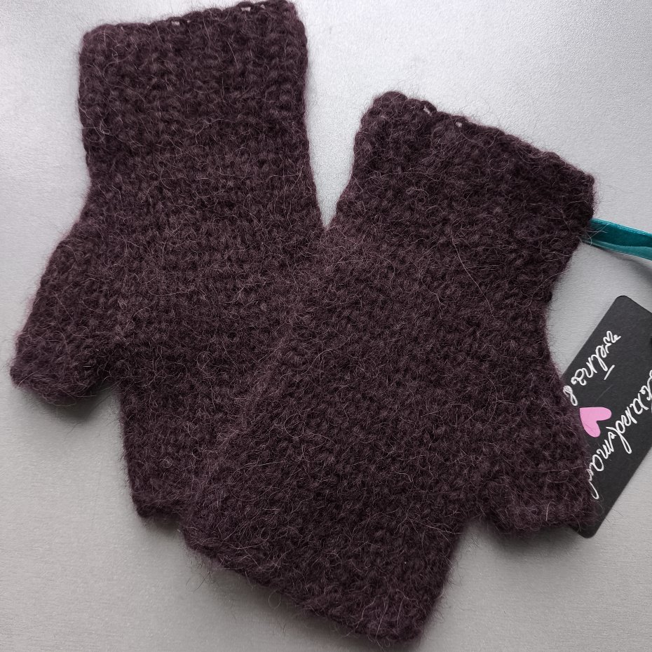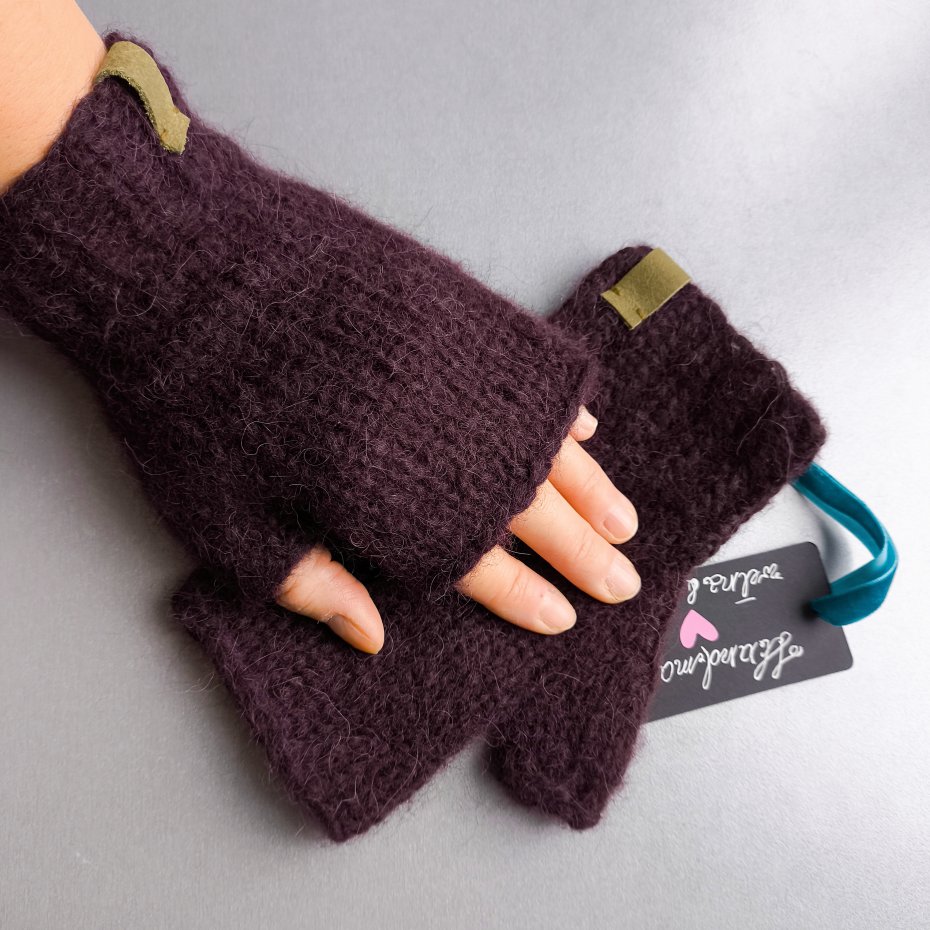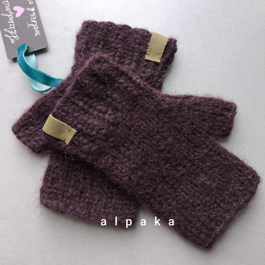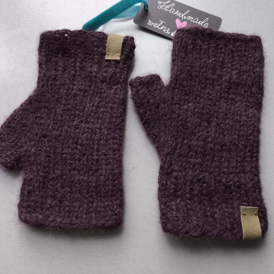 Mitenki z alpaki w kolorze bardzo ciemnego bordo.