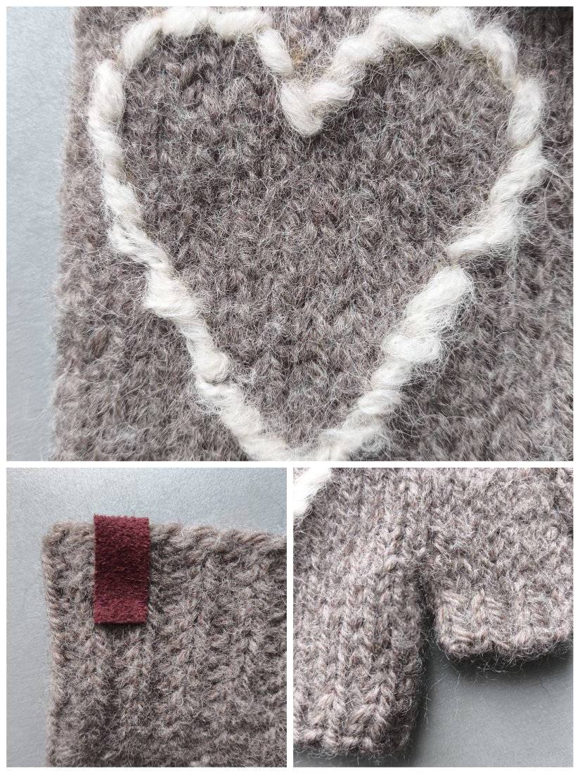 Dla ozdoby mają wyszyte serce w kolorze ecru.