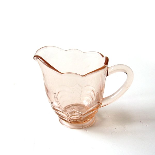 Piękny mlecznik wykonany z różowego szkła. Ładny dodatek do wnętrza. Polecam.