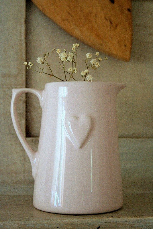 Uroczy ceramiczny mlecznik. W kolorze pastelowego różu z wytłoczonym, uroczym serduszkiem:)