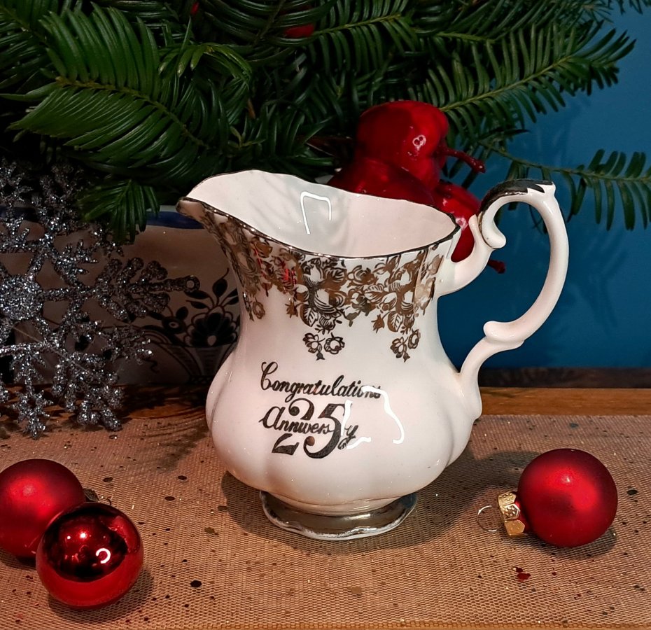 Mlecznik jest częścia kolekcji "25th Anniversary", charakteryzującej się platynowym kwiatowym wzorem na białym tle. Napis na mleczniku brzmi "Congratulations Anniversary 25th".