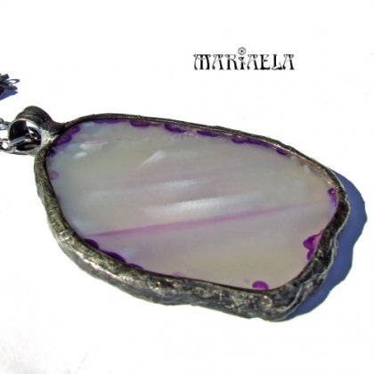 Serdecznie zapraszam do spojrzenia na wyjątkowy wisior wykonany z agatu. Długość wisiorka razem z oczkiem 9,8 cm. Trwałe wykończenie witrażowe. Używam wyłącznie ekologicznej, bezołowiowej cyny. Prawdziwy rarytas :-) Pojedynczy projekt! Zapraszam! MARIAELA