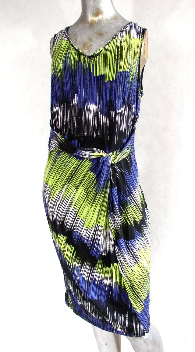 Letnia sukienka firmy MODA at GEORGE,Rozmiar 44.Materiał 97% wiskoza+3% elastan.Odcięta w pasie z wszytym pasem,przekręconym.Dekolt z przodu ozdobiony koralikami na żyłce.Stan ogólnie dobry+.Długość 105 cm.pod pachami 104 cm.na płasko,lekko rozciągliwa.