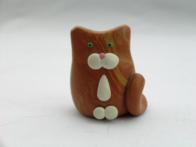 Ręcznie z polotem i lekkością wykonana modelinowa figurka kociej rudości :) Ach, te policzki i biały krawacik ! 3,5 x 3 x 3 cm. Stan zachowania bardzo dobry.