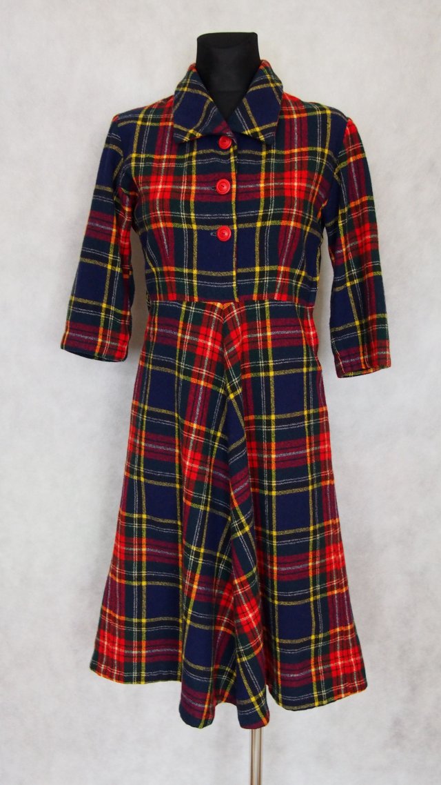 Sukienka vintage w kratę. Grubsza, idealna na jesień. Z boku wszyty zamek ułatwiający zakładanie, guziczki na przodzie rozpinane. Models of destination Barbara.