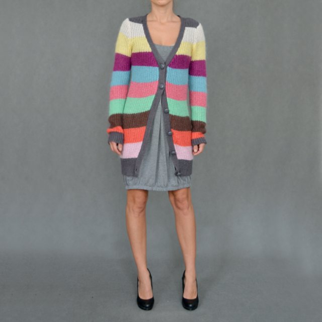 Moherowy kardigan w kolorowe pasy. Marka BIK BOK.