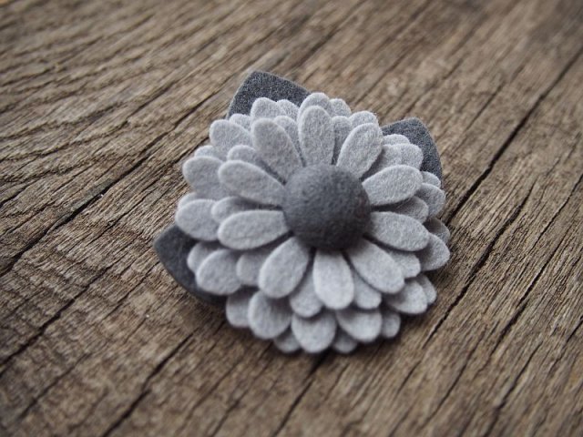 Broszka przypinka kwiatuszek z filcu merino w środku ręcznie robiony guzik Śr. kwiatka ok. 5 cm , zapięcie broszkowe z blokadą. PROJEKT AUTORSKI !