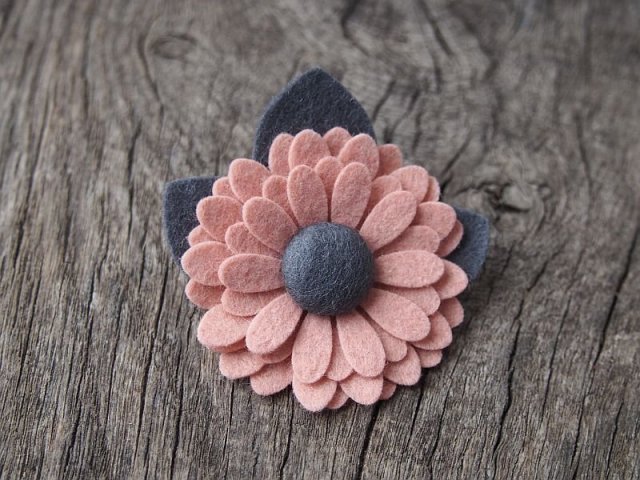 Broszka przypinka kwiatuszek z filcu merino w środku ręcznie robiony guzik Śr. kwiatka ok. 5 cm , zapięcie broszkowe z blokadą. PROJEKT AUTORSKI !