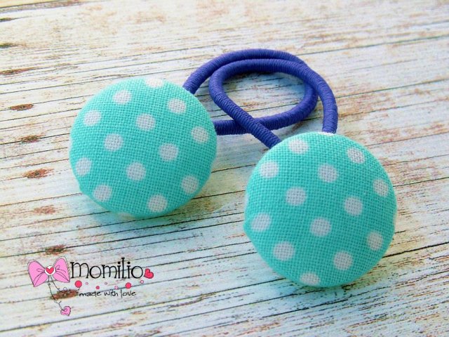 Guziki obciągnięte tkaniną w kropeczki