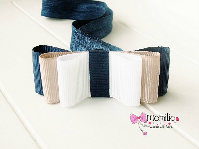 Śliczna opaska do włosów z kokardką w kolorze granat,beż,biały.