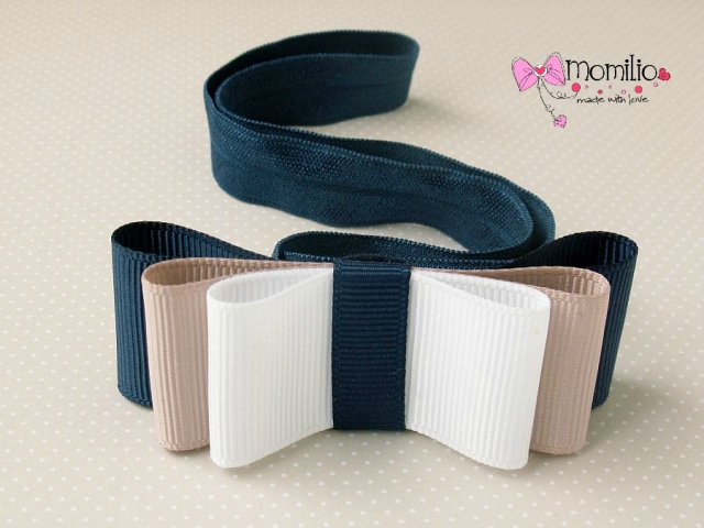 Śliczna opaska do włosów z kokardką w kolorze granat,beż,biały.