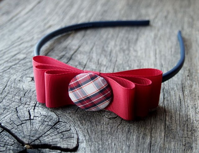 Śliczna opaska do włosów z kokardką w kolorze bordowo granatowym