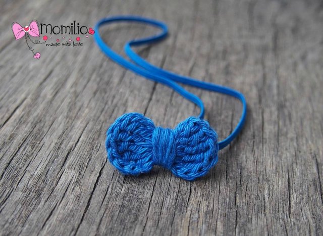 Śliczna opaska do włosów z szydełkową kokardką w kolorze chaberkowym. Lekka delikatna dla najmniejszych dziewczynek.