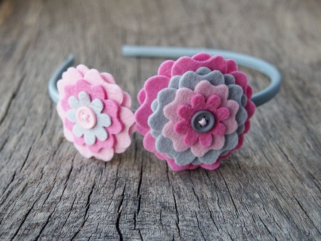 Opaska do włosów ozdobiona filcowymi kwiatkami