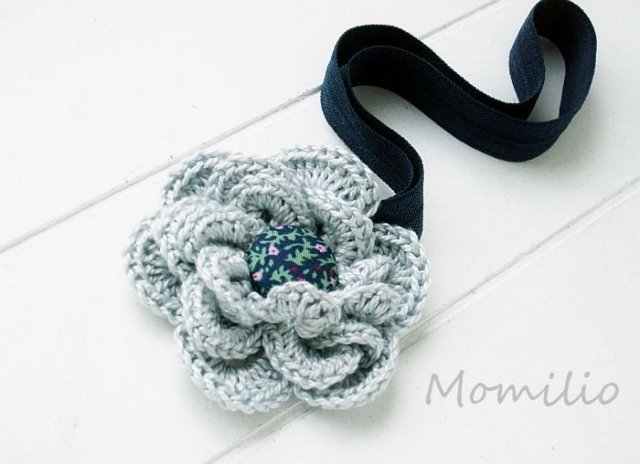 Opaska do włosów ozdobiona szydełkowym kwiatem