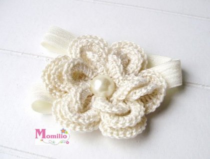 Śliczna opaska do włosów z szydełkowym kwiatem i perełką