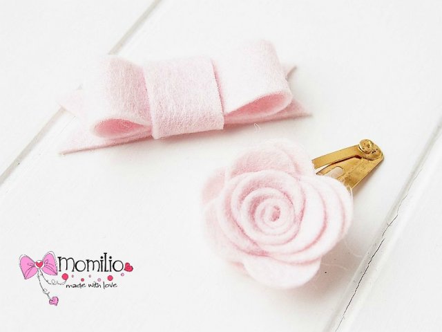 Różyczka i kokardka uszyta z filcu merino,