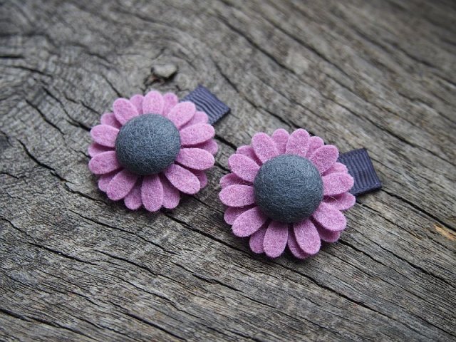 Kwiatuszki z filcu merino ozdobione guzikiem