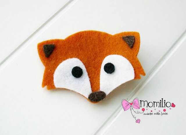 Spinka do włosów lisek uszyta z filcu.