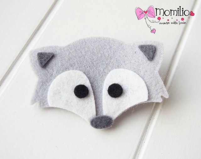 Spinka do włosów lisek uszyta z filcu.