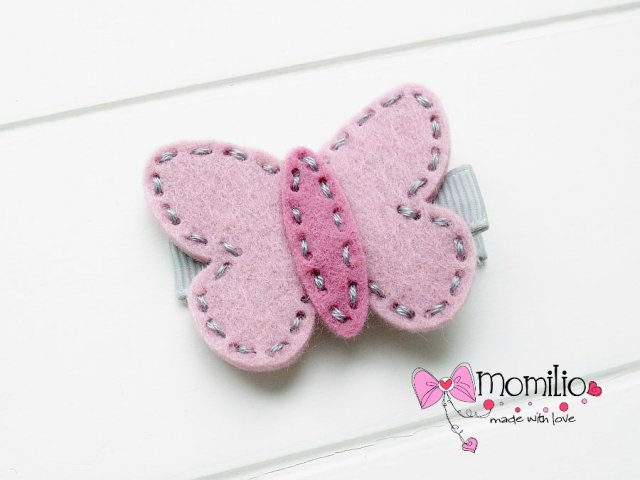 Motyl uszyty z filcu dobrej jakości.