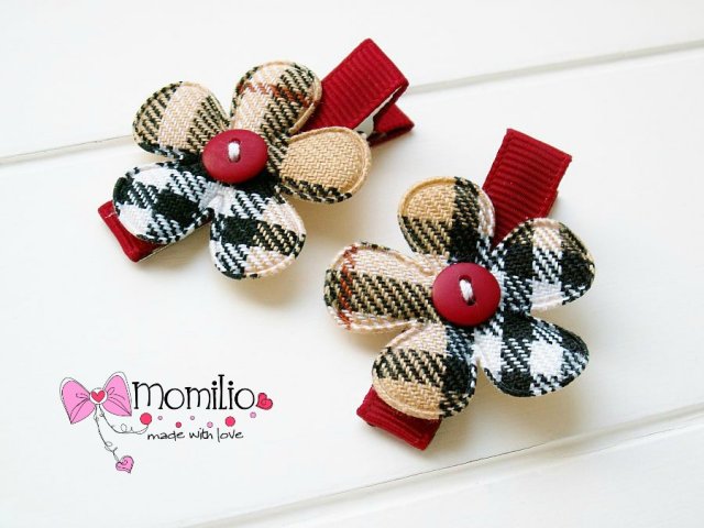 Śliczne spinki do włosów kwiatuszki w kratkę.