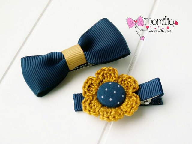 Śliczne spinki do włosów kokardki. Kwiatuszek i kokardka