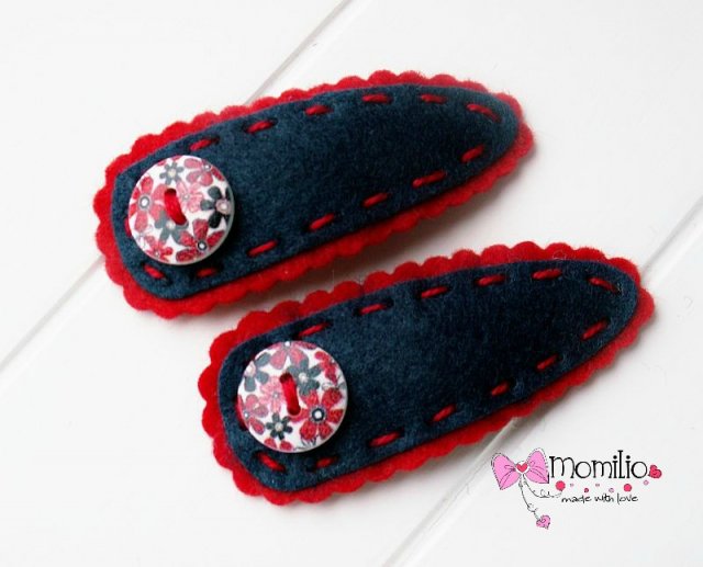 Komplet spinek do włosów z limitowanej kolekcji. Delikatne i lekkie uszyte z filcu bardzo dobrej jakości. Bardzo ładniej prezentują się na włoskach. Spinka typu pyk 5 cm wszyta w środku. Projekt autorski!