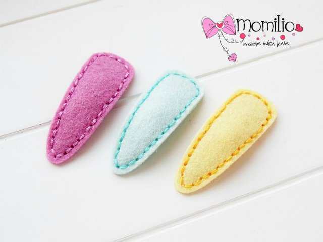 Komplet spinek do włosów z limitowanej kolekcji. Delikatne i lekkie uszyte z filcu bardzo dobrej jakości. Bardzo ładniej prezentują się na włoskach. Spinka typu pyk 5 cm wszyta w środku. Projekt autorski!
