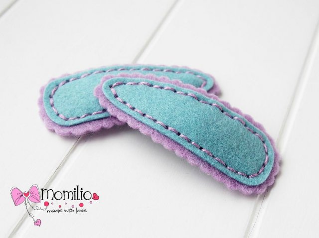 Komplet spinek do włosów z limitowanej kolekcji. Delikatne i lekkie uszyte z filcu bardzo dobrej jakości. Bardzo ładniej prezentują się na włoskach. Spinka typu pyk 5 cm wszyta w środku. Wielkość spinki 2,5 cm x 6,5 cm.