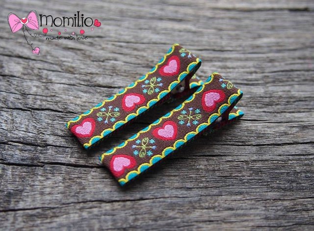 Komplet dwóch spinek do włosów wykonany z pięknej żakardowej wstążki.